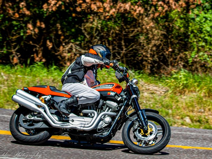 Current bid: $1,099Panorama City, California – This S2 Thunderbolt features a split orange/white/black paint job reminiscent of the Harley-Davidson VR1000.