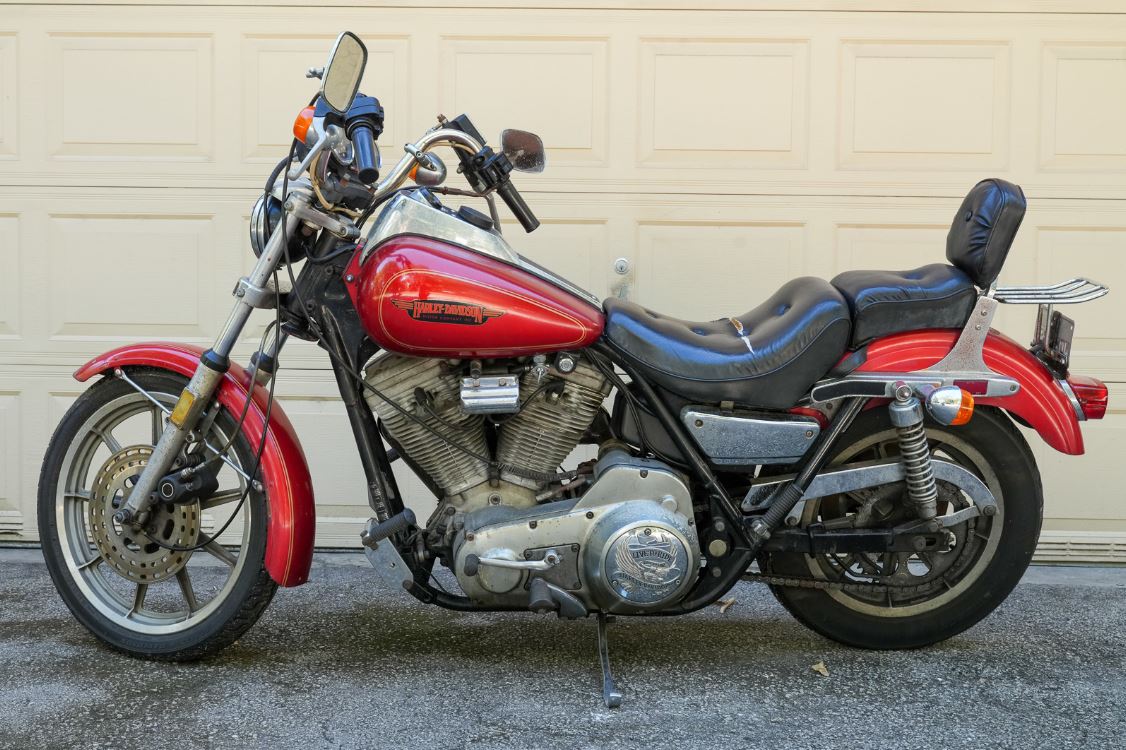 Willie decided to build a production bike that offered custom looks – the “FX” title stands for Factory Experimental. Combining parts from the FLH (the frame/rear suspension/drivetrain) and XL (front suspension/headlight/brakes) models, you also got buckhorn handlebars and a distinctive boattail fender – though the rear fender was quickly changed to appease styling criticisms.