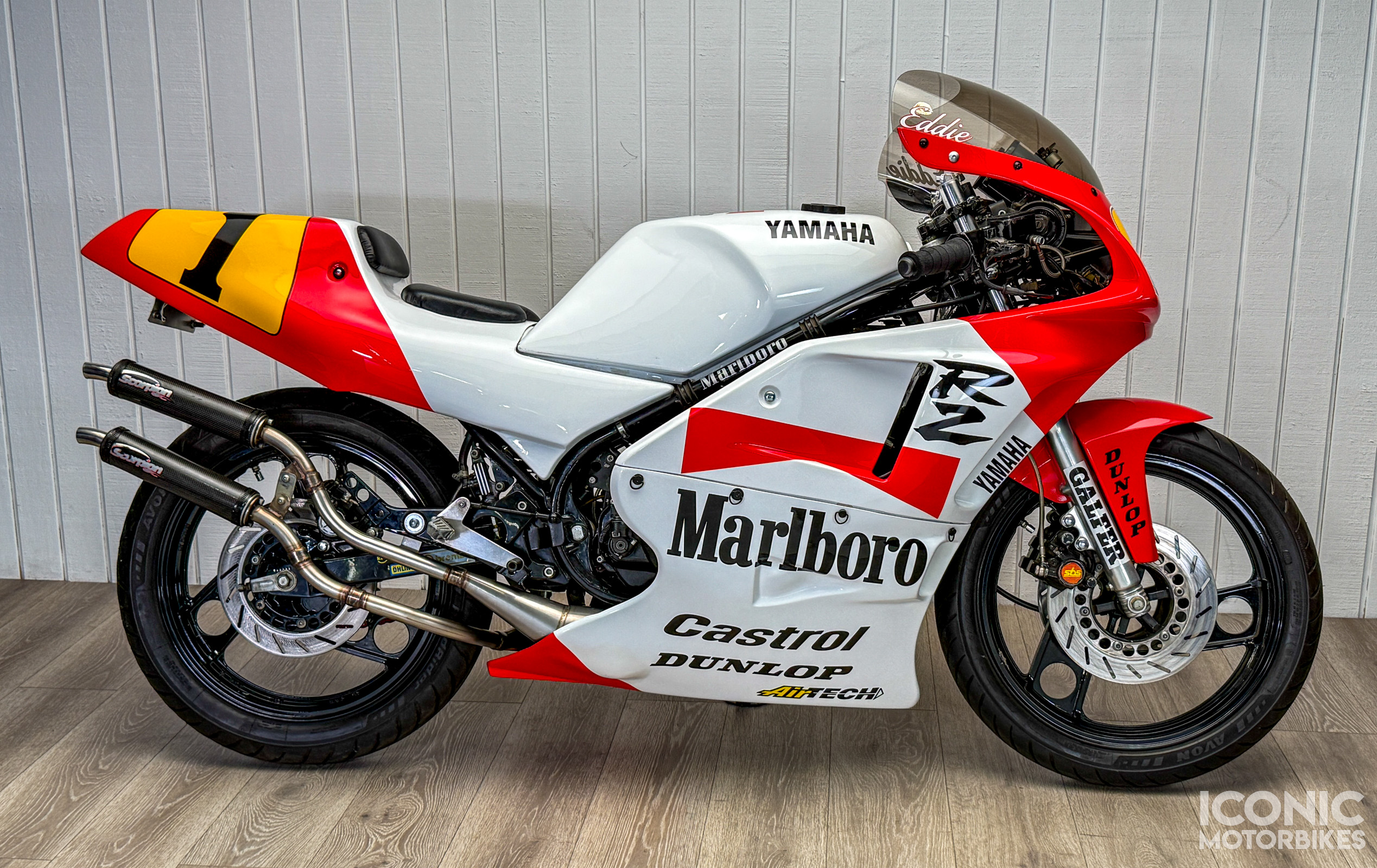 US models were specifically marketed as Kenny Roberts replicas with the legendary “speedblock” livery and Kenny’s signature on the front fairing. This model, however, is wearing race replica Team Roberts Marlborough fairings.