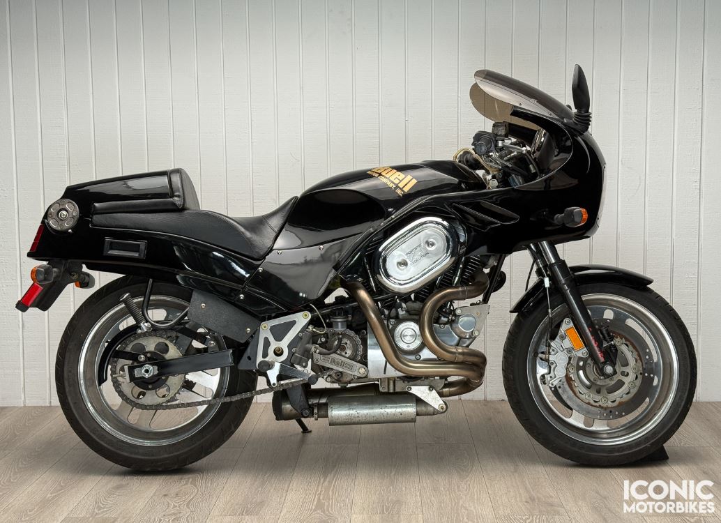Only about 200 were ever produced, and the half-faired, 2-up RS1200 showed off the Harley Sportster engine prominently. The engine was not modified, and was thus good for 70 horsepower. This was capable of pushing the 462 pound bike up to a a top speed of about 120 mph.