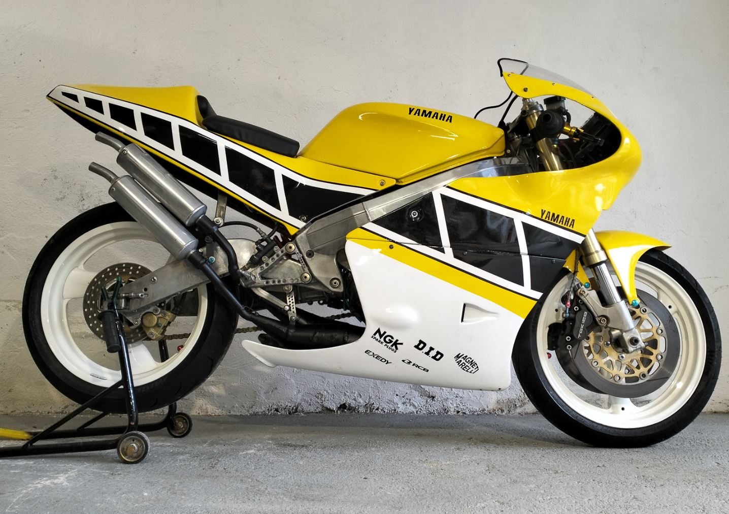 The paint scheme is a tribute to the iconic Kenny Roberts Yamaha 500GP and is in very nice condition.