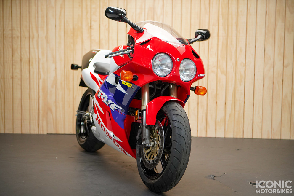 The successor to the legendary RC30, Honda’s RC45 (or RVF750R) was a limited run homologation special created to help Honda re-establish supremacy in World Superbike. Though it was ridden to back-to-back titles in ’88 and ’89, by 1993 the RC30 had grown noticeably long in the tooth and it was clear that a new race weapon was needed to dethrone Ducati and its mighty twin. Honda’s answer came in 1994 in the form of the RC45.