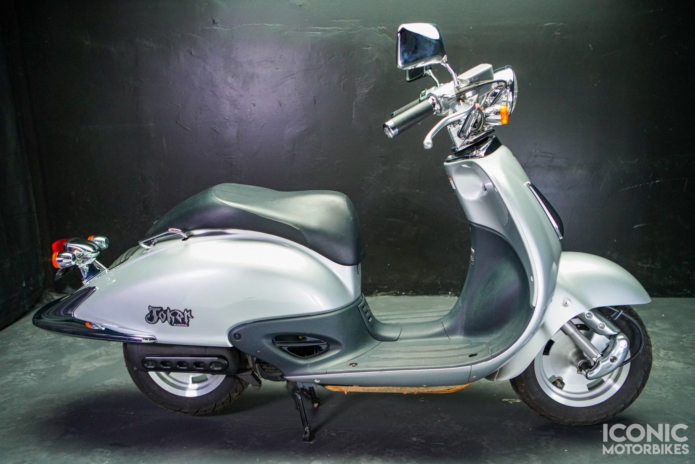 The Joker first appeared in Japan in 1996 as a 50cc two stroke scooter. The Joker later made it’s way to Europe and to the US shores, however it was rebadged as a SRX50 and was also available with a 90cc engine. Per cmsnl.com “Although guilty of over ‘Americanisation’ the styling is actually rather cute, and was aimed by Honda for their Japanese home market well known for their penchant for vintage products. The SRX50 Shadow as it is known in Europe and Joker in Japan has a 41.1mm bore with 39mm stroke giving a swept volume of 49cc.”