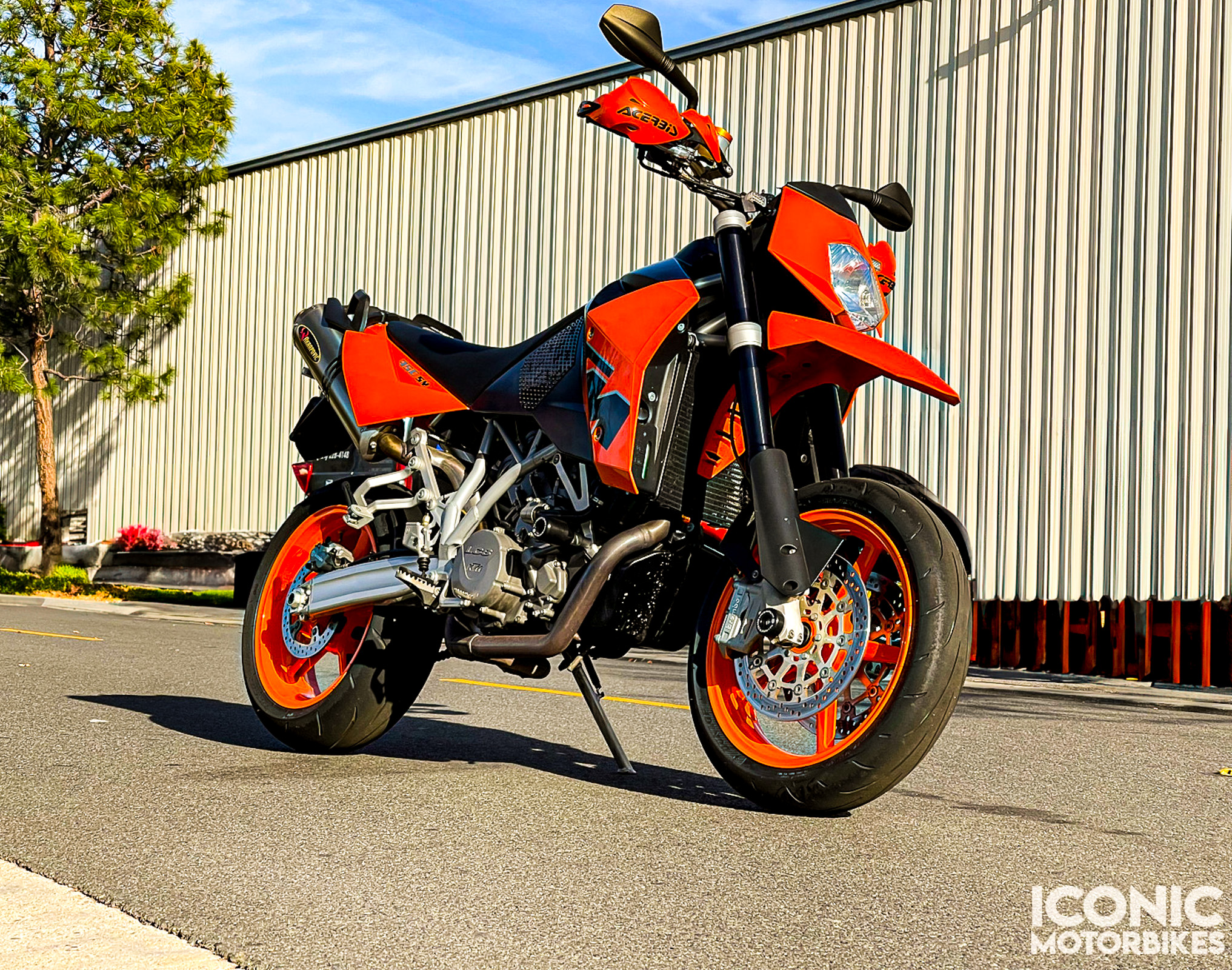 In 2005, KTM came out with a big bore supermoto that the media absolutely fell in love with. In MCN’s words, “with the KTM 950 Supermoto finally someone delivers on the supermoto promise, combining the agility, low-down woof and rugged can-do with mile-after-mile reliability, comfort and higher speeds of a top-quality road bike. It’s a big capacity V-twin bad boy that, finally, really can shake its tail at sportsbikes in the twisties.”