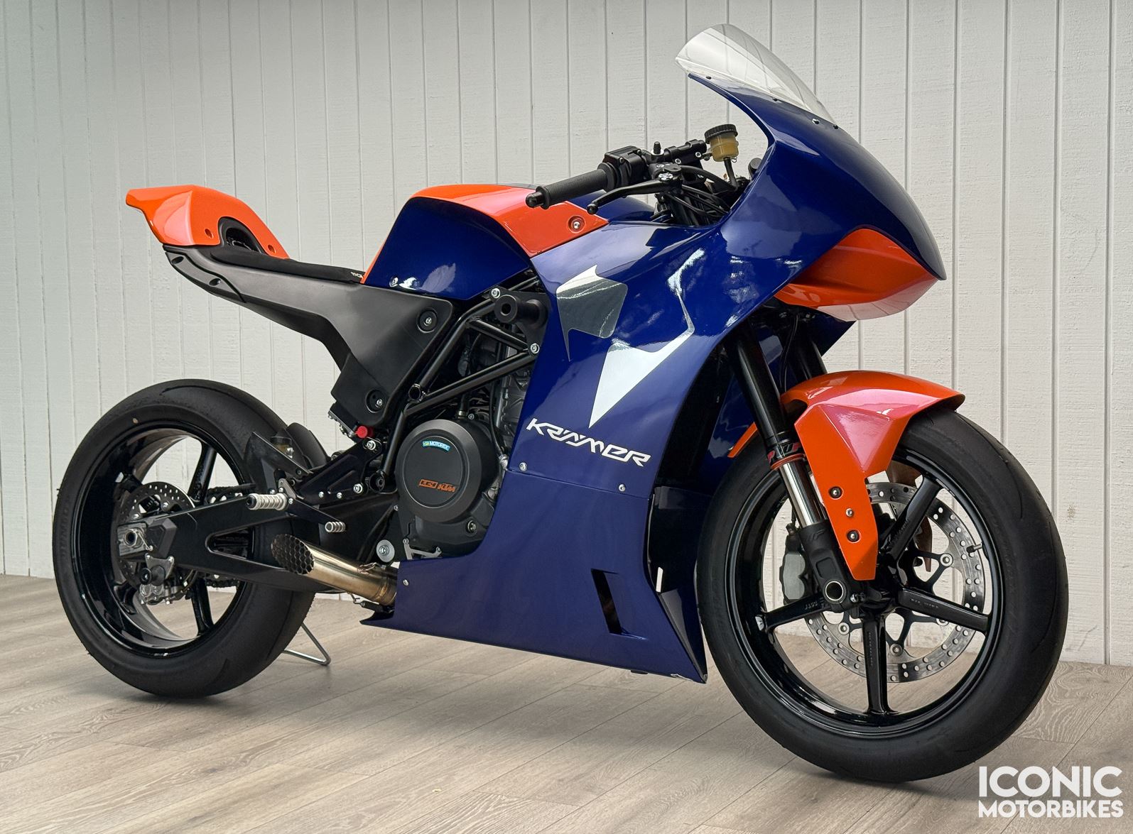 In practice, this means that everything on the bike has been engineered with fast lap times in mind. Powered by an 80 hp 690cc KTM single with a high-flow head, an ultralight piston, and a high-strength connecting rod, it’s complemented by a chromium-molybdenum steel trellis frame, 43mm WP forks, a WP rear shock, and Brembo brakes. What’s more, Krämer designed the tail section to serve as a fuel cell, lowering the center of gravity and making the bike more compact in footprint.