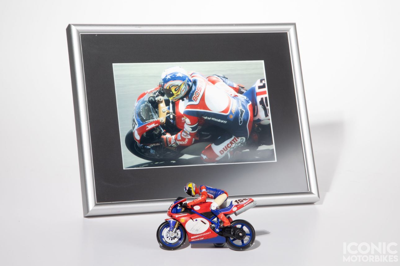 This auction is for a framed combination of a framed art print and signed rider/motorcycle