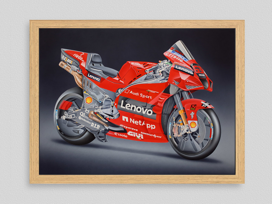 Today, Ted is offering an original painting of Pecco Bagnaia’s Ducati MotoGP race bike.