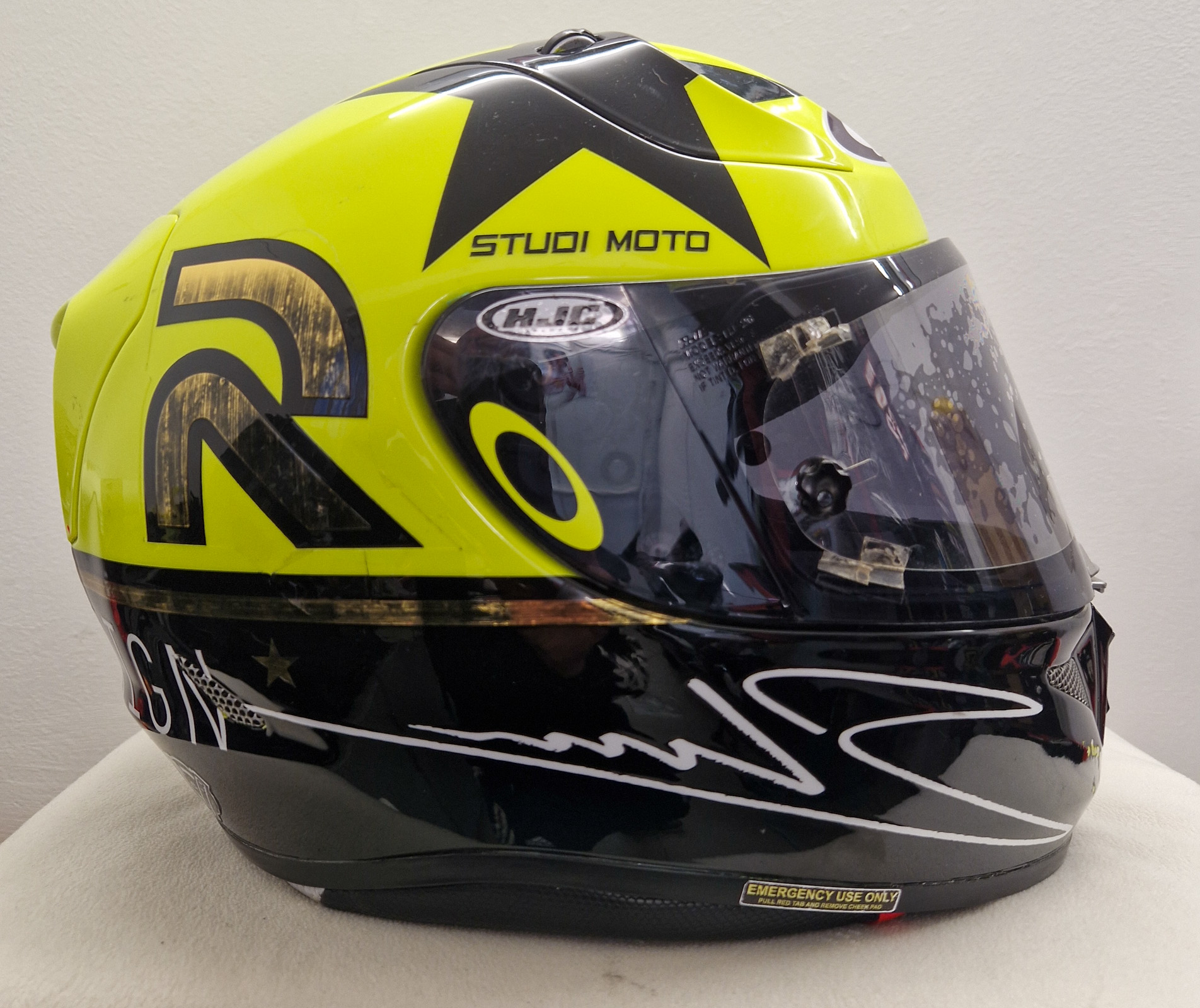 Currently located in Sheffield, South Yorkshire England, this HJC is offered on a Bill of Sale only. Have any Toni Elias Race Helmet stories or questions about this listing? Let us know in the “Comments” tab!