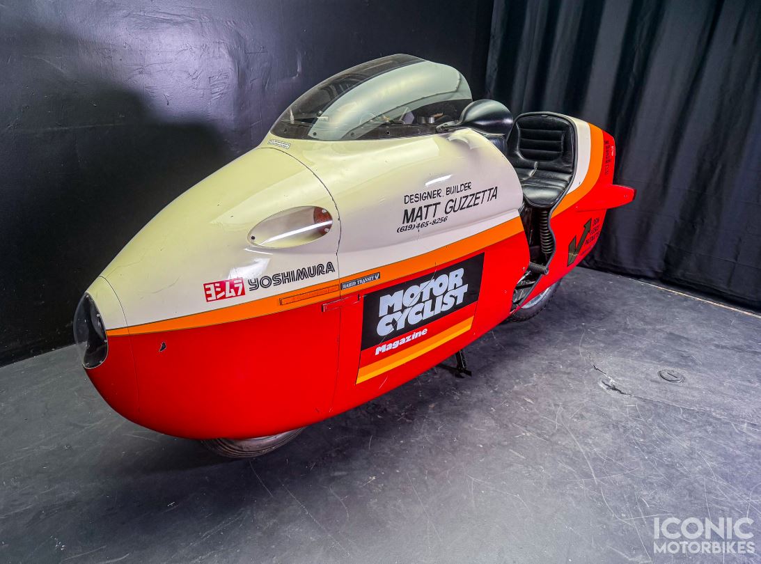 It all started with Matt’s desire to build a bike that could surpass 200 miles per gallon. As you can imagine, there were many iterations of the design. Per Matt, “the motorcycle is already one of the most fuel-efficient means of transportation, and the single-cylinder Suzuki is downright miserly – straight out-of-the-box!” In fact, he was able to get 113 mpg on a test run with the GN125 just by increasing tire pressure to 48 psi front and rear. The first test was at the second annual Vetter Fuel Economy Run in 1982. In the 1983 Vetter Fuel Economy Run (held on Sunday, July 17th, 1983), Matt was able to achieve 256.92 miles per gallon.