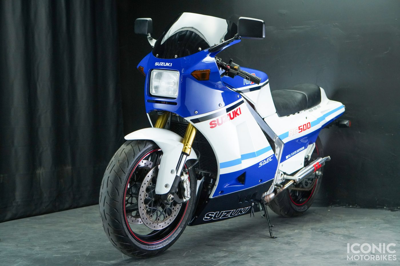 After Suzuki introduced the RG-Gamma series in 1983, the line grew to span displacements ranging from 250-500cc. A true race-replica for the streets, it boasted the latest and greatest in two-stroke technology. Along with an advanced aluminum box frame, it also featured Suzuki’s “Full-Floater” rear suspension and a water-cooled square four. The 397cc engine produced 59 horsepower at 9,000 rpm.