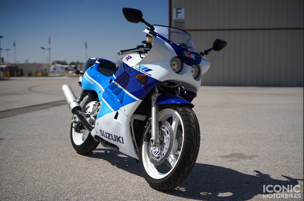 Also released in ’89 was the Sports Production model. Sporting a single seat and a fully adjustable suspension, the blue and white SP also came outfitted with a slingshot carb and SCAI (Suzuki Condensed Air Intake). Production ended the following year in 1990 and Suzuki replaced the model with the similarly named GSX250F Across.