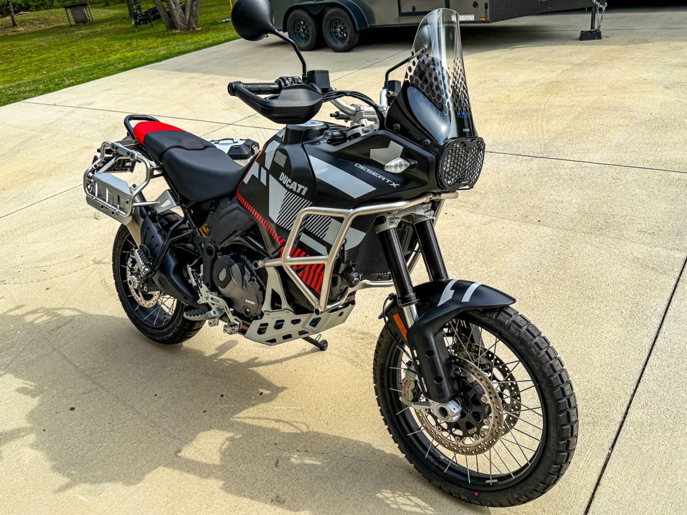 Ducati.com has this to say of the all new 2023 DesertX “Equipped with a 21” front and 18” rear wheel, the new DesertX is designed to handle even the most challenging off-road terrain. Ducati has combined its road expertise with dedicated off-road development to create a responsive, easy-to-handle bike that is at ease on all types of trail and asphalt. Ergonomics, engine, aerodynamics, and electronics, together with an off-road specific chassis, form the base of DesertX. As efficient and technologically advanced as every Ducati, DesertX is robust, reliable and functional, the ideal travel companion for your adventures.”