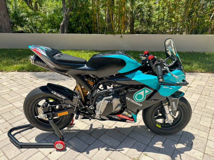 $25,680Plantation, Florida – “Beautifully prepared V2 track-bike – ready for any kind of track-days or club racing. It dynos at 149 RWHP and runs/handles amazing. This is not your de-tuned Moto-America “sluggish” version. I have been steadily upgrading since I purchased in May 2024 and started work at Moto Corse Performance.”